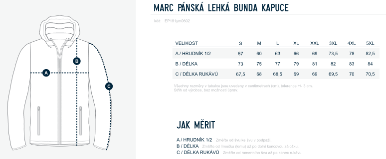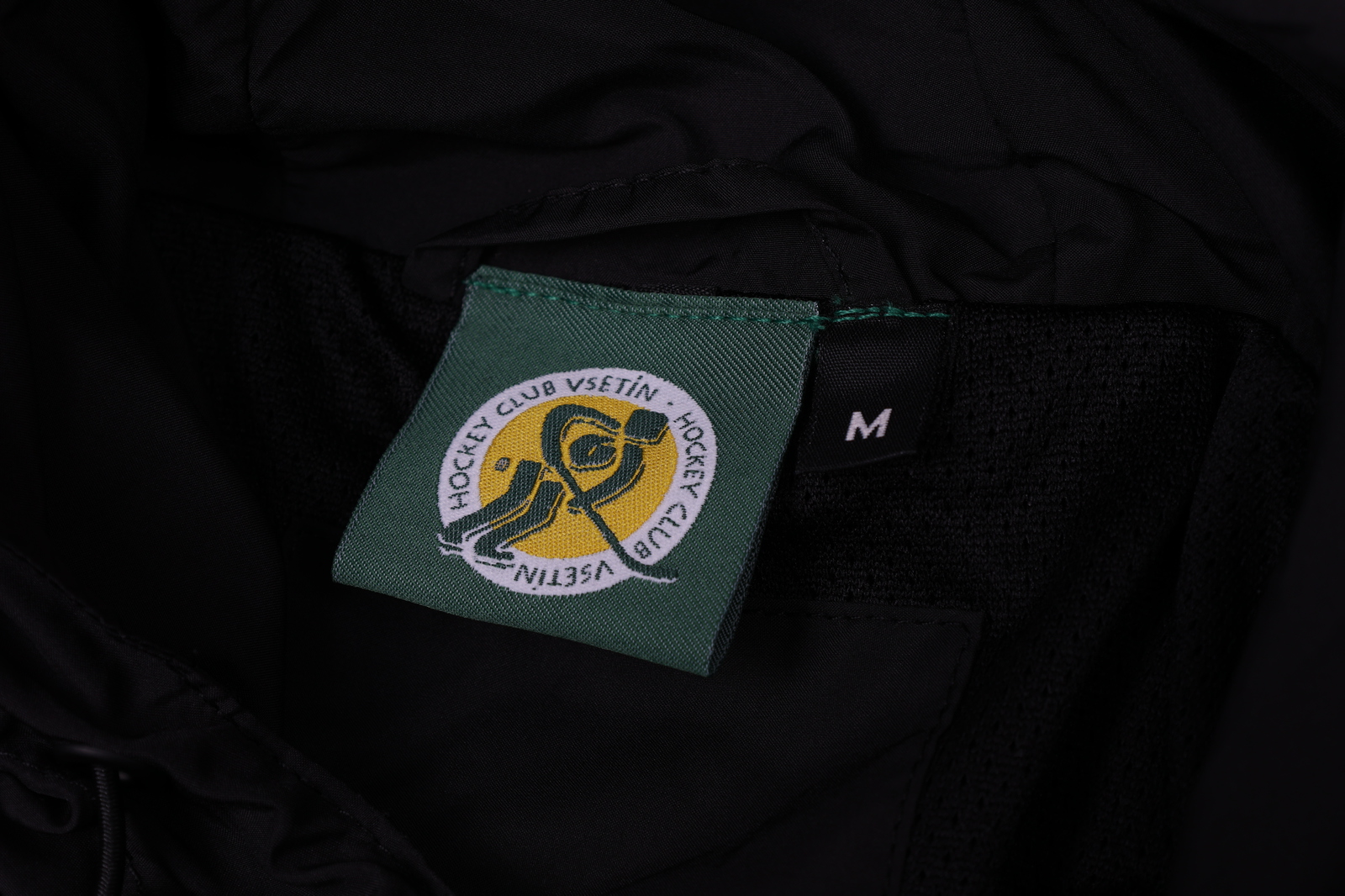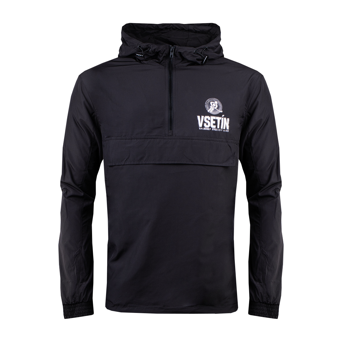 Sportovní pánská lehká bunda s kapucí. Materiál odolný proti větru a odpuzující vodu. Kapuce s vsazovaným límcem a zipem. Oblékání přes hlavu. Etiketa v pase, štítek logo. Uvnitř bundy sportovní síťovina. V pase stahovací šňůrka.