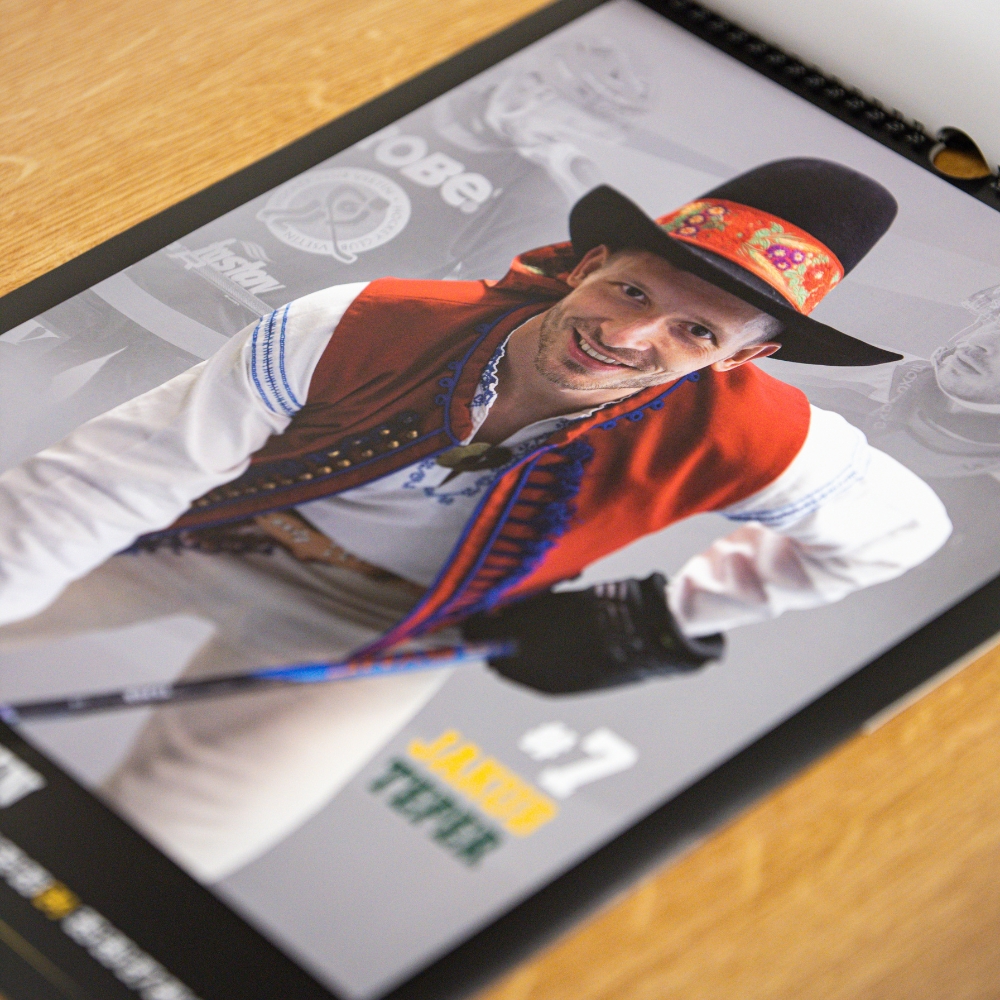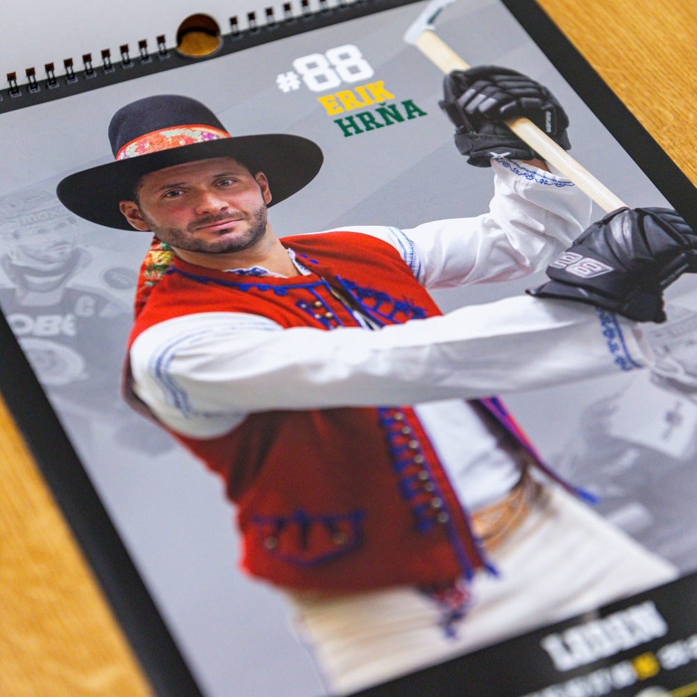 Nástěnný kalendář VHK 2025 Co se stane, když hokejisty VHK ROBE Vsetín obléknete do valašských krojů? Výsledek zjistíte na nástěnném kalendáři pro rok 2025! Jeden hráč = jeden měsíc.