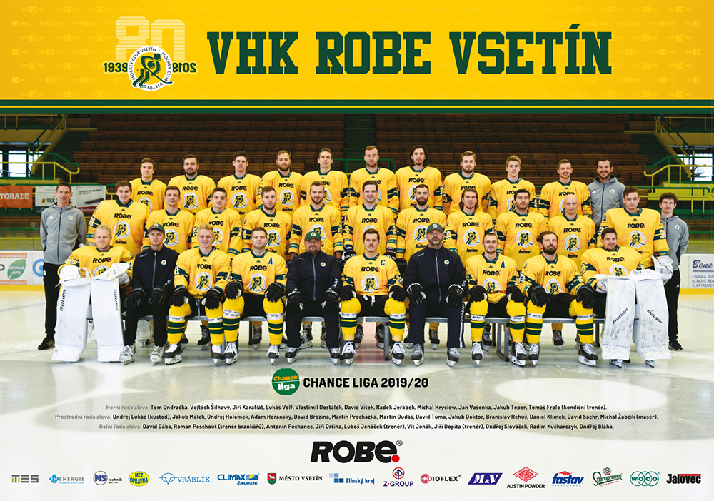 Plakát s A-týmem Vsetína ze sezony 2019/2020 ve formátu A2.